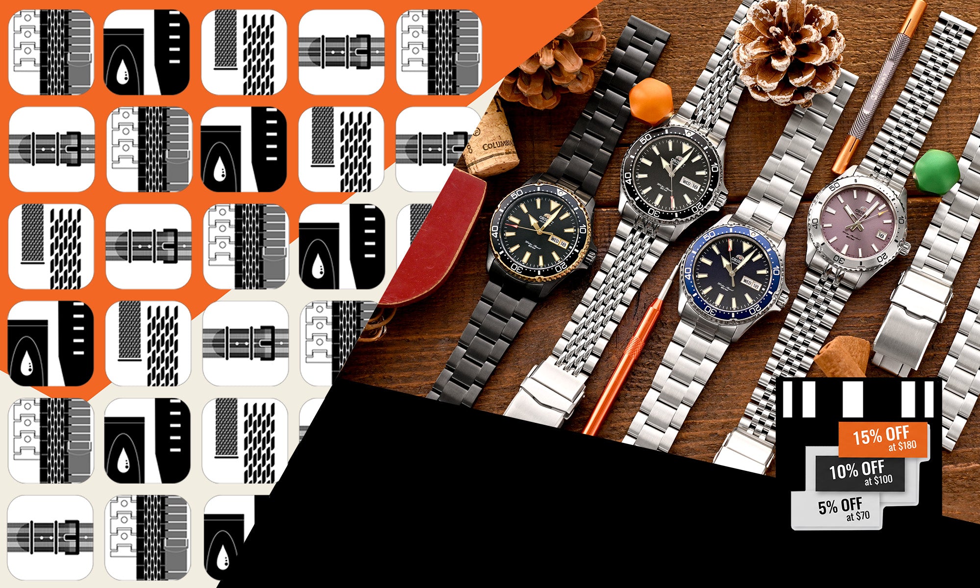 Discover our comprehensive selection of premium watch bands - from refined metal, handcrafted leather, and sophisticated mesh to durable nylon and quick release watch bands. Each piece is meticulously crafted for perfect fit and lasting quality.