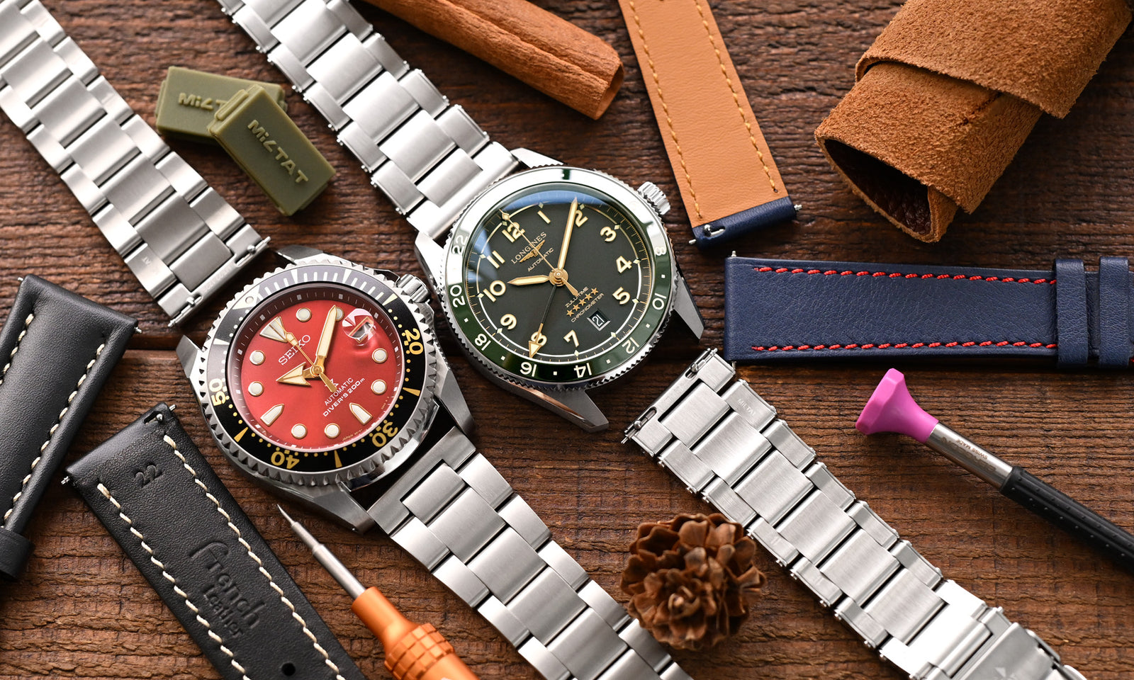 Precision-engineered watch bands with built-in spring bars - transform your timepiece without tools.