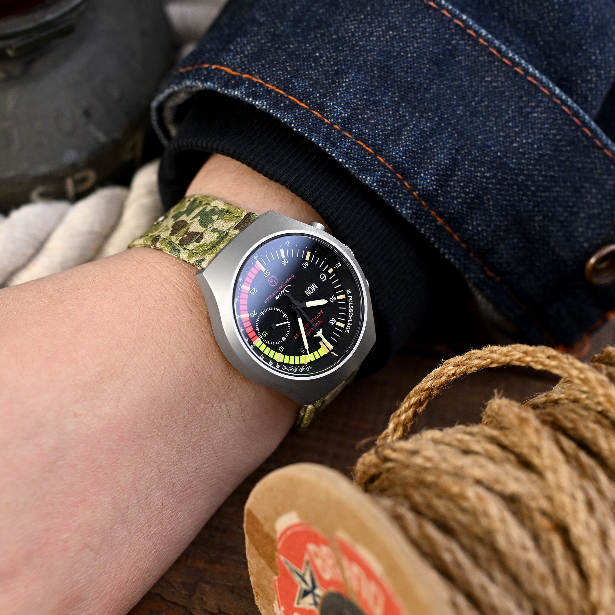 Watch Bands Lookbook demo watches by Strapcode : : Sinn 157 EZM-4 Chronograph day-date black Dial