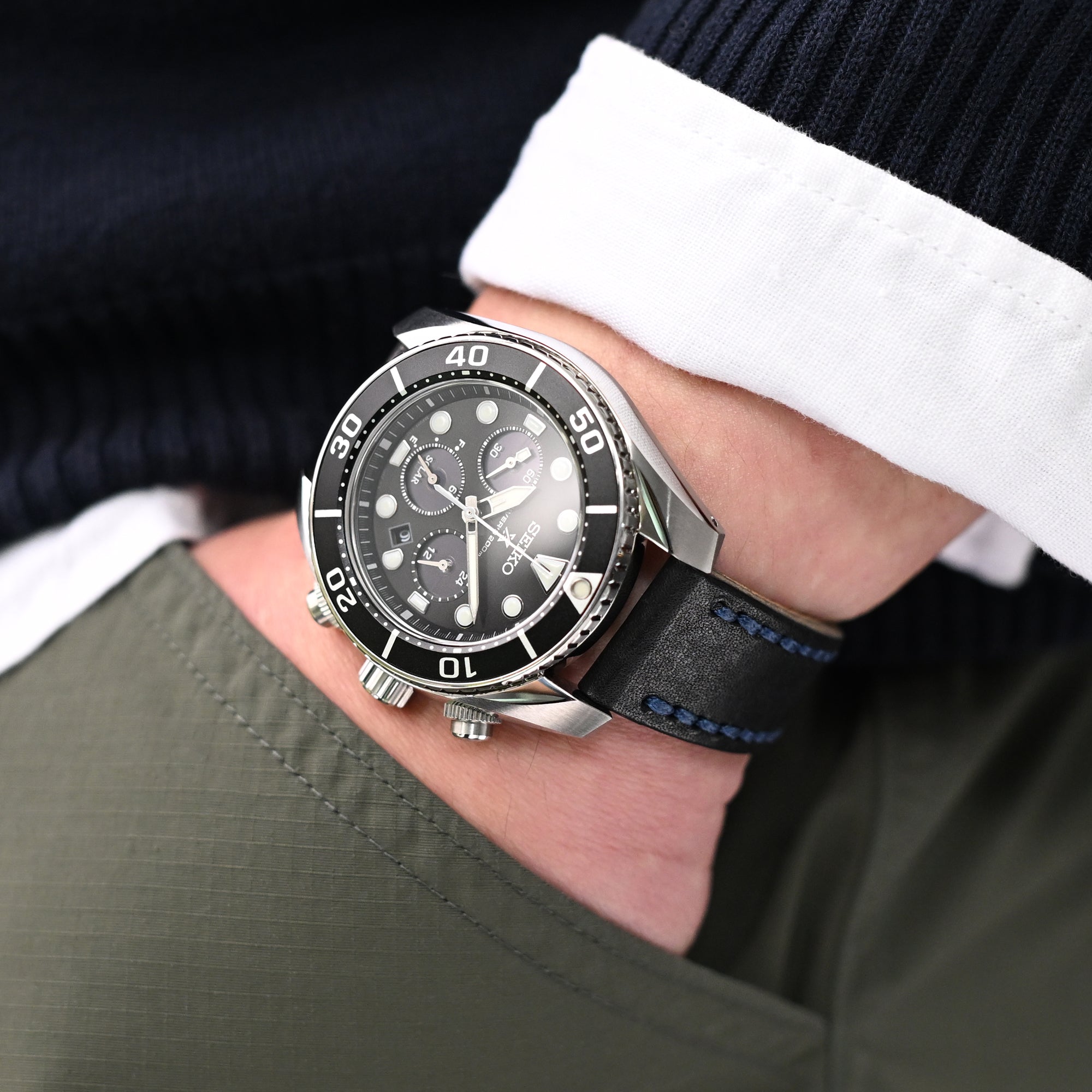 La collezione di cinturini in pelle fatti a mano Griffon è realizzata a mano con la migliore pelle di vitello italiana dai nostri artigiani. Presenta cuciture a mano in cera prominenti e un attacco da 20 mm che si assottiglia a 4 mm prima di integrarsi con un link in acciaio inossidabile 316L solido che porta alla chiusura a fibbia. L'elegante link extra progettato aggiunge una transizione fluida tra il cinturino e la fibbia, estendendo la durata di questo pezzo unico e ben realizzato che si indossa comodamente come un braccialetto. Ogni pezzo è una vera opera d'arte, unica nella sua bellezza e maestria. Per garantire la scelta della giusta misura, misura il tuo orologio e il tuo polso utilizzando il calcolatore di taglia fornito sopra "Controlla la tua taglia QUI" prima di selezionare l'opzione di lunghezza appropriata.