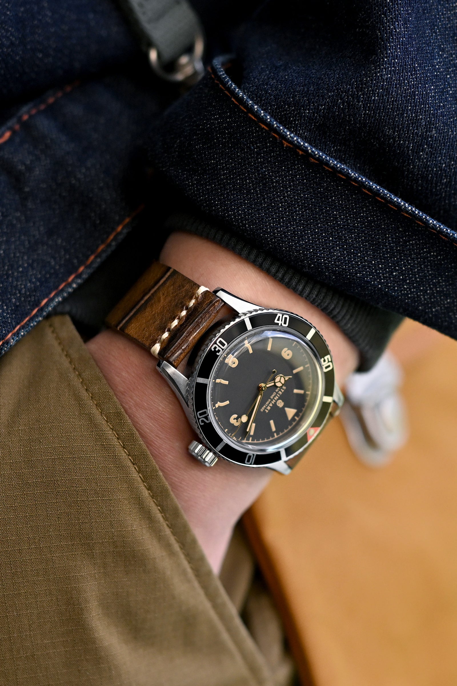 ポケットのエッジは自然なフレームとして機能し、構造を提供しながらカジュアルさを維持します。生地の詳細を含めて、独特のステッチや素材の質感を示しつつ、フレームを圧倒しないようにします。時計のためにフレームの約3分の2を、衣服のコンテキストのために3分の1を残すことで、最もバランスの取れた結果が得られることがわかりました。