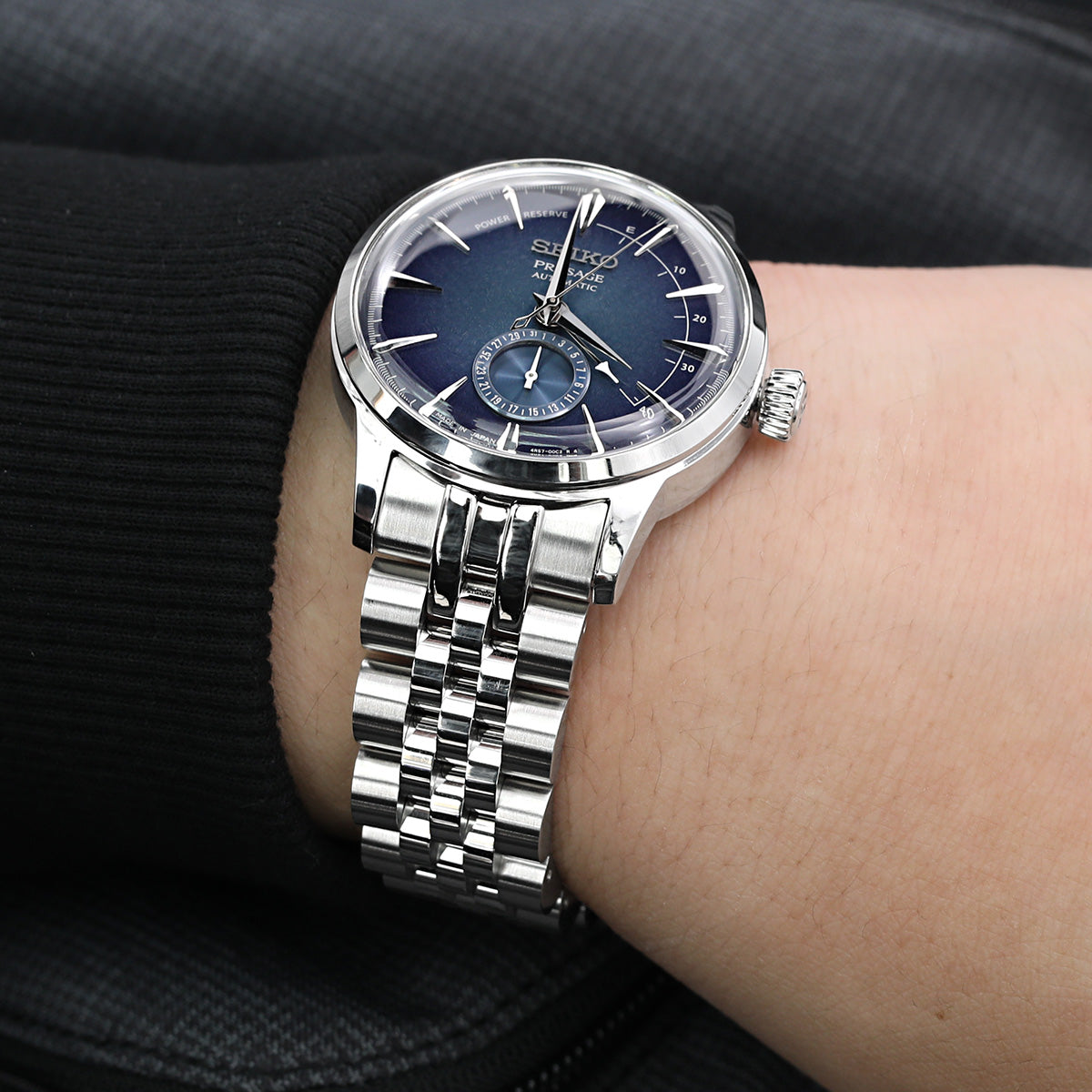 セイコー プレステージ パワーリザーブ カクテル は、SSA341、SSA345、SSA346などのベストプラクティスのフォトギャラリーです。 MiLTATによって曲線エンドリンクのソリッドラグステンレススチールブレスレットに変更することで、セイコー パワーリザーブ カクテルの外観をアップグレードし、セイコーモッズトレンドを始めましょう。