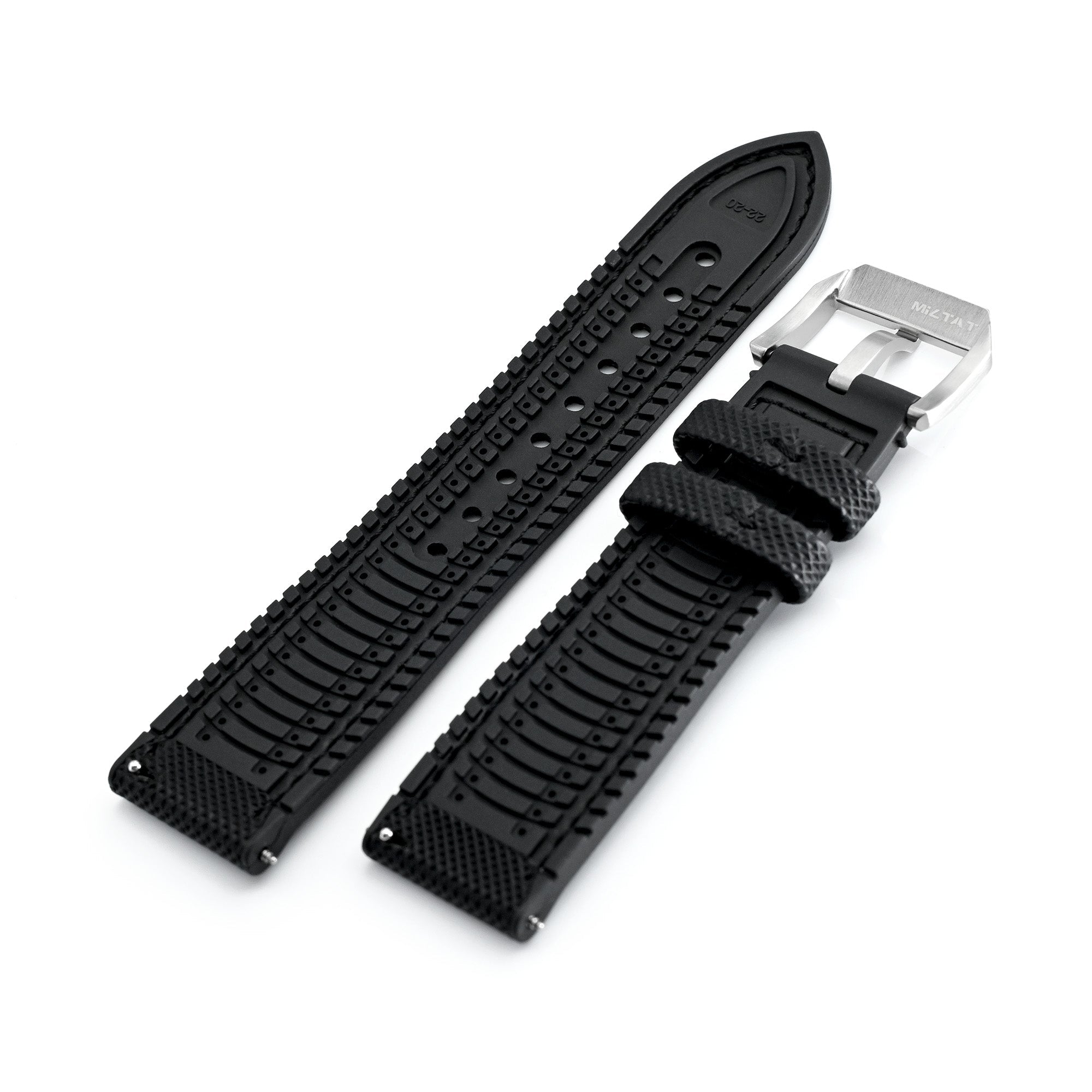 FKM38 Black FKM Quick Release Rubber Watch Band, Brushed, 20mm or 22mm